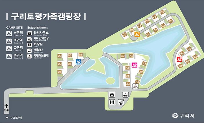 네비게이션 이용시 "구리타워" 또는 캠핑장 주소를 검색하시고 오시면 편리합니다.
