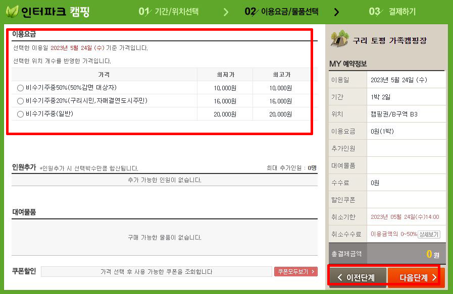 저렴한 가격에 가볍게 떠나는 도심 속 캠핑장인 구리토평캠핑장의 가격과 예약방법은 다음과 같다.