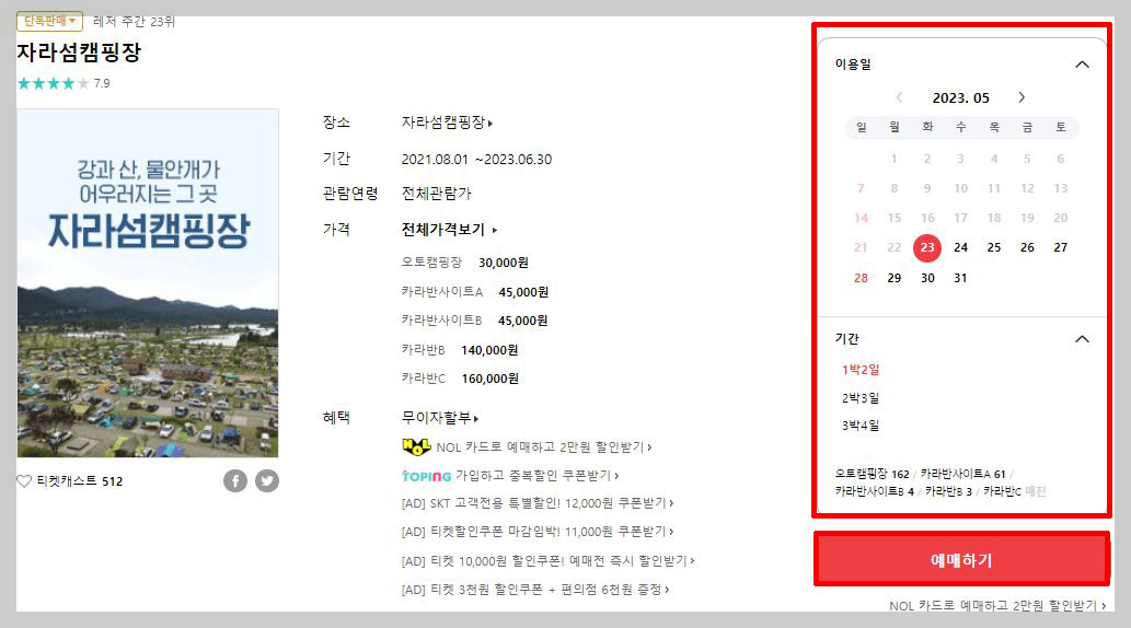 자라섬 캠핑장 예매방법