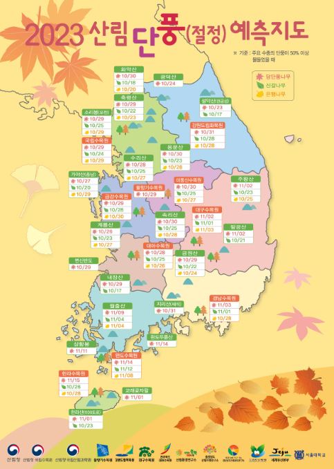 지리산 및 남부지방:10월 23(수요일)~11월 5일(화요일)
