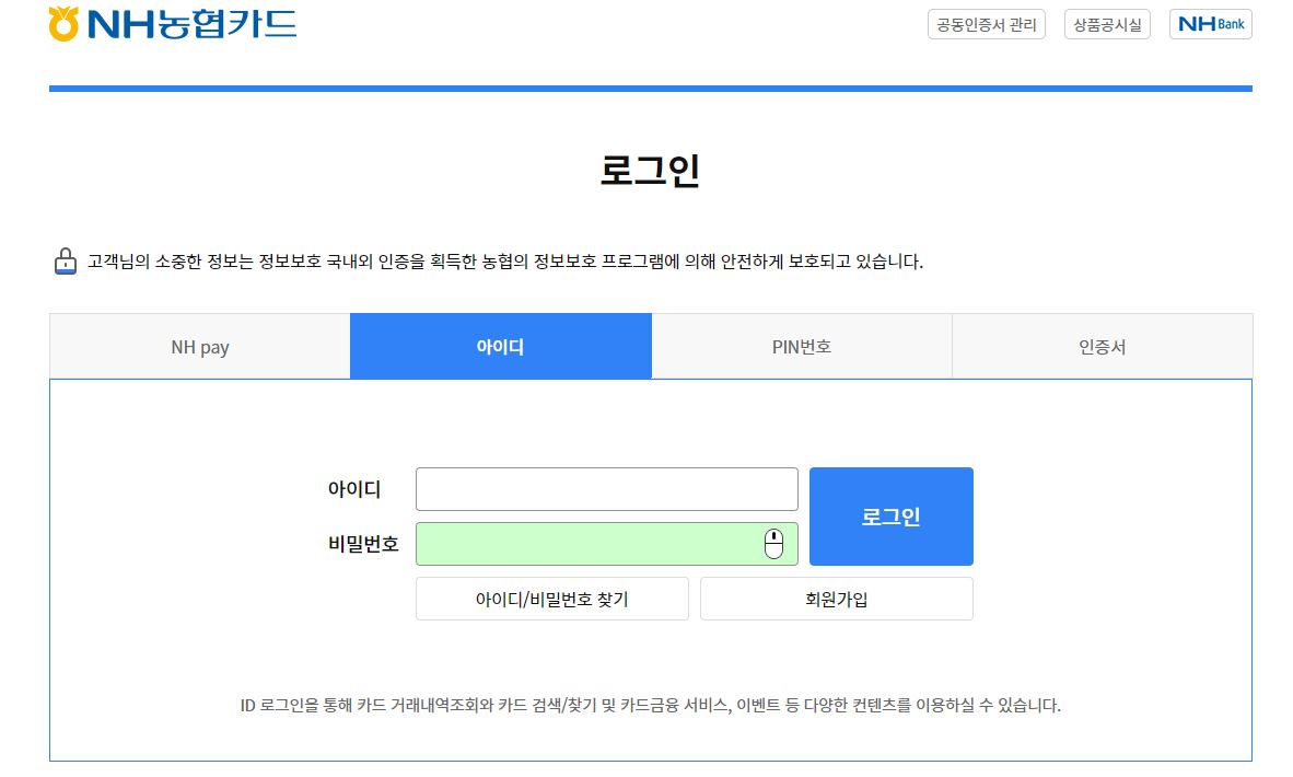 농협카드 로그인