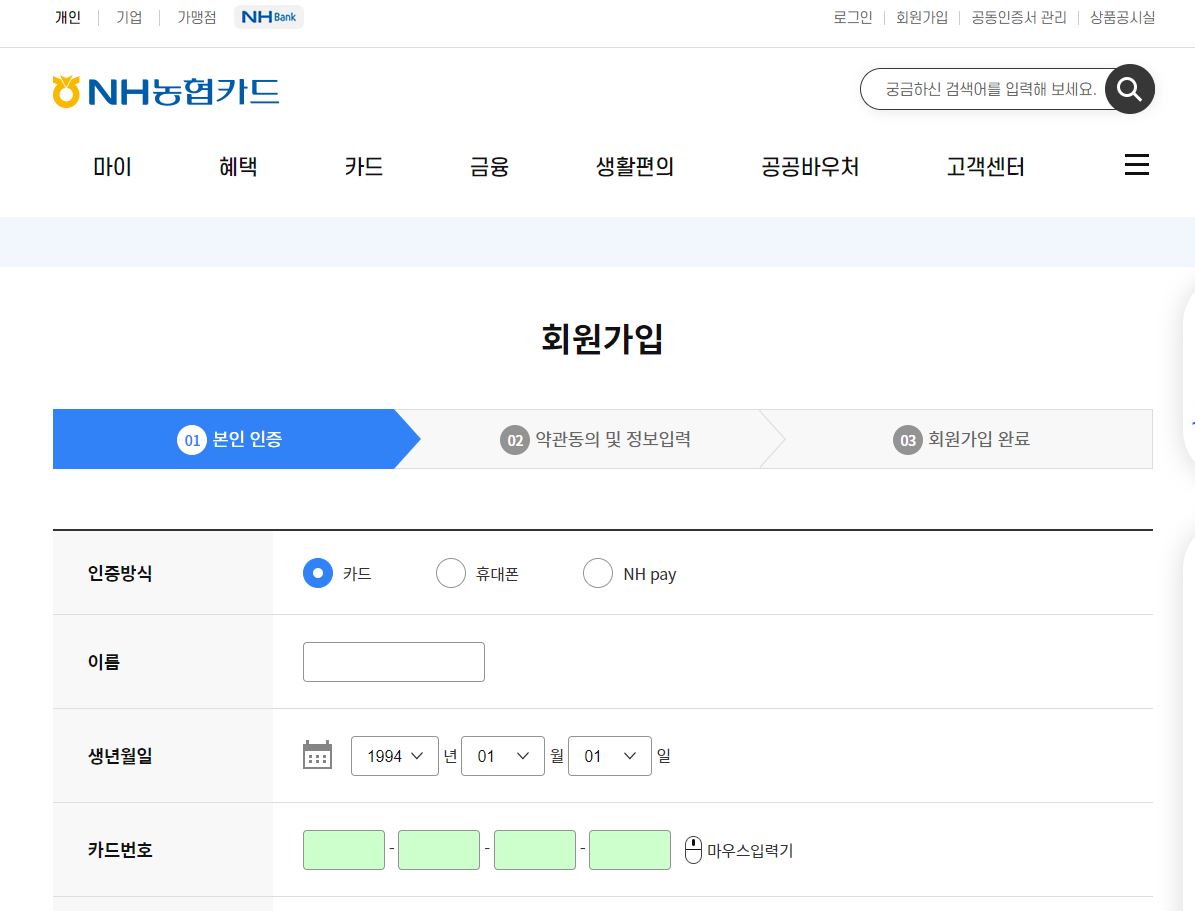 농협카드 회원가입